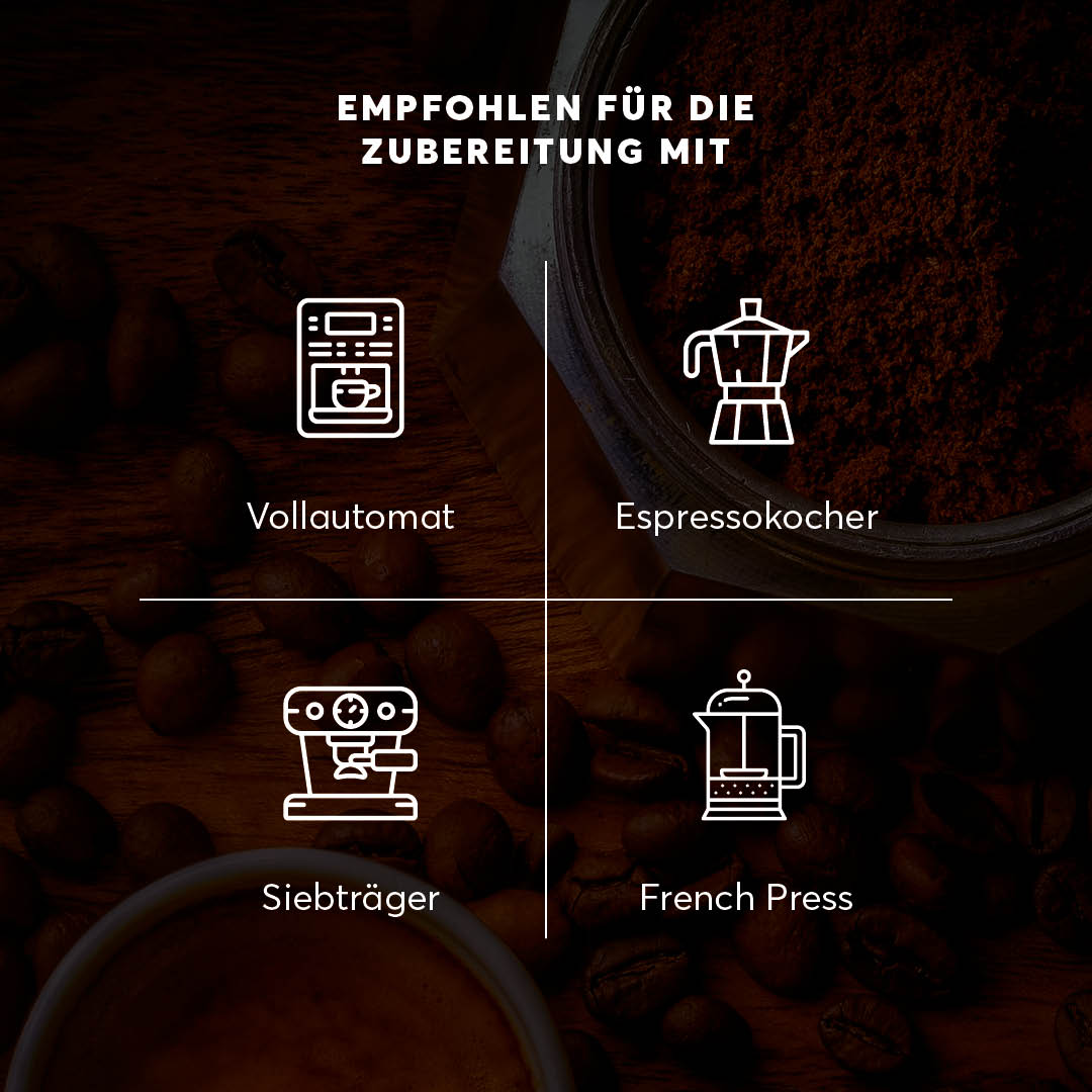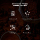 Wir empfehlen immer, wenn möglich, die ganze Bohne zu bestellen und vor jeder Zubereitung frisch zu mahlen. So bekommst du das perfekte Ergebnis, abgestimmt auf deine Lieblingszubereitung. Die Bohnen eignen sich auch perfekt für den Vollautomaten.