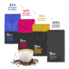 250g entkoffeinierter No Coffee, 250g No Coffee mit 75% weniger Koffein 250g No Coffee mit 50% weniger Koffein, 250g No Coffee mit 25% weniger Koffein oder 250g entkoffeinierter No Espresso, 250g No Espresso mit 75% weniger Koffein 250g No Espressomit 50% weniger Koffein, 250g No Espresso mit 25% weniger Koffein Die gemahlene Variante ist für Filterkaffee optimiert. Die ganze Bohne ist perfekt für Kaffee-Vollautomaten oder das eigenständige Mahlen zuhause.