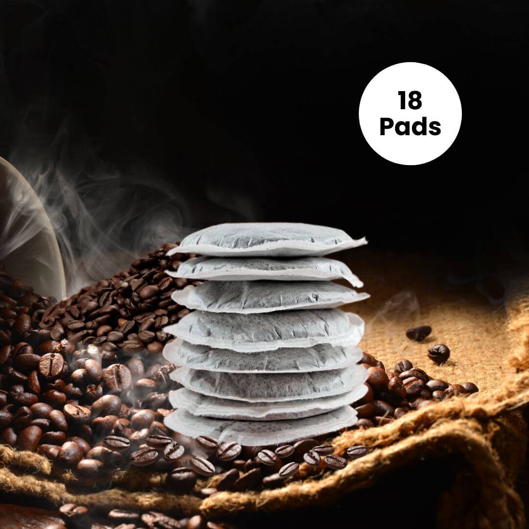 Unsere Espresso-Pads sind etwas kräftiger geröstet und feiner gemahlen. Dadurch entsteht ein intensiver, aromatischer Geschmack mit feiner Crema – perfekt für den kurzen, vollmundigen Espresso-Genuss.