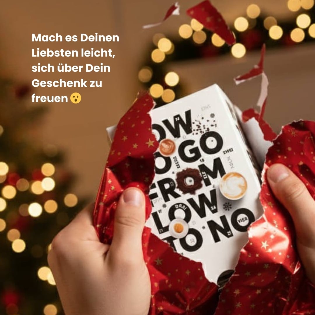 Wenn Du jemanden Kennst der Kaffee liebt, dann wird derjenige diesen Kalender lieben. Denn in jedem Kaffee steckt jahrelange Rösterfahrung und die besten Bohnen der Welt. Und damit dein Geschenk zu Herzklopfen und nicht zu Herzrasen führt, haben wir nur Kaffee mit weniger Koffein in Deinen Kalender gepackt. Ausschließlich mit Wasser entkoffeiniert und in Langzeitröstung veredelt.