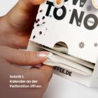 Unser Kalender wird nachhaltig und komplett ohne Plastik produziert. Unsere Drip Bags sind kompostierbar und die Box aus Papierkarton.