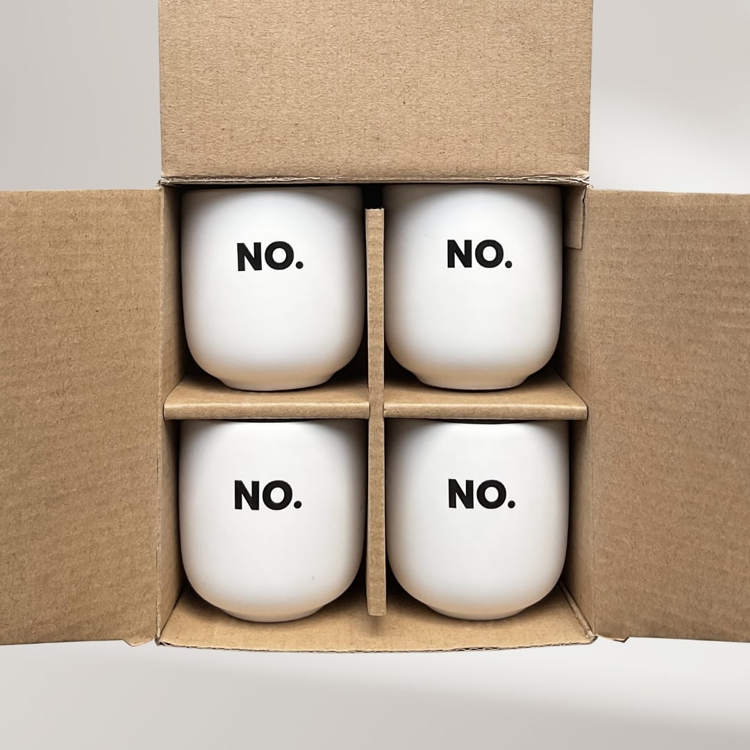 Schluss mit den 0815-Henkel-Humpen von der letzten Messe. So hochwertig und geschmackvoll wie dein No Coffee kommt nun auch deine neue Lieblingstasse daher. Minimalistisch und stilvoll. Und weil sichs in Gesellschaft doppelt so gut genießen lässt, bekommst Du die Tassen gleich im 4er-Set.