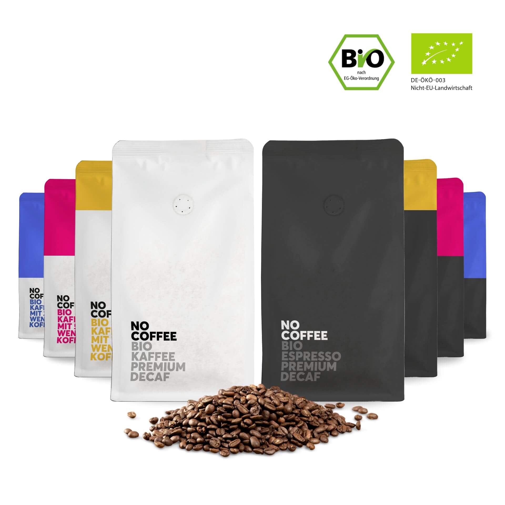 No Coffee revolutioniert die Kaffee-Welt: Der erste Kaffee, der 1:1 schmeckt wie Kaffee mit Koffein, enthält aber bis zu 99,9% weniger Koffein. Entscheide, ob Du 25%, 50%, 75% weniger Koffein oder ganz ohne Koffein trinken willst. Bereits über 6 Millionen Tassen wurden bereits getrunken und Tag für Tag kommen tausende weitere hinzu. Mach auch Du den Schritt in eine gesündere Kaffeewelt ohne Stress!