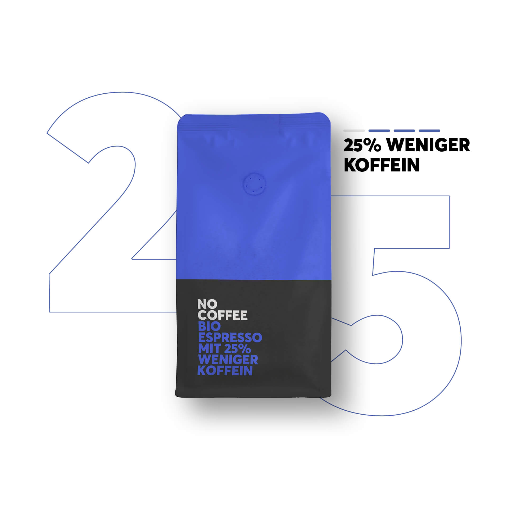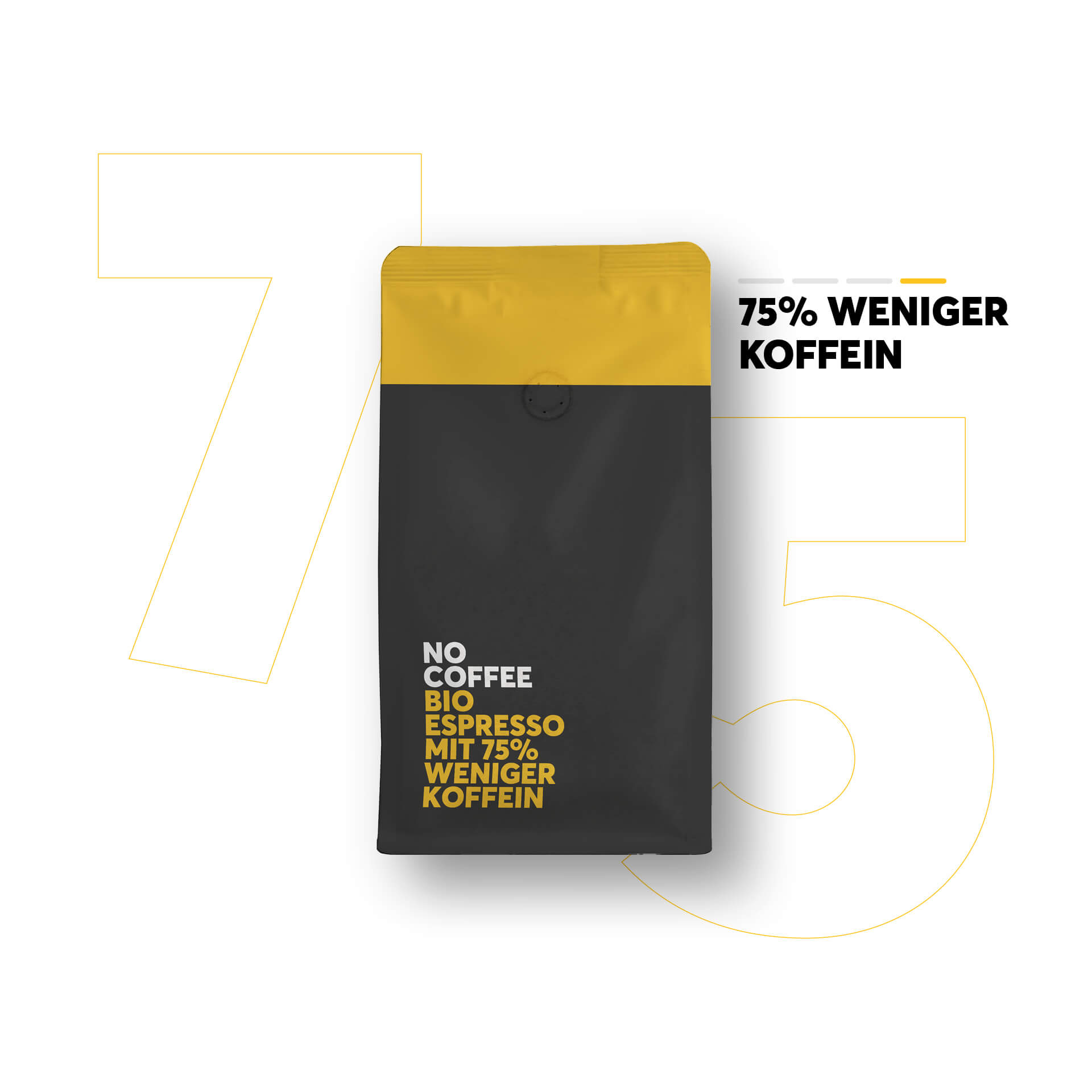No Coffee revolutioniert die Kaffee-Welt: Der erste Kaffee, der 1:1 schmeckt wie Kaffee mit Koffein, enthält aber bis zu 99,9% weniger Koffein. Entscheide, ob Du 25%, 50%, 75% weniger Koffein oder ganz ohne Koffein trinken willst. Bereits über 6 Millionen Tassen wurden bereits getrunken und Tag für Tag kommen tausende weitere hinzu. Mach auch Du den Schritt in eine gesündere Kaffeewelt ohne Stress!